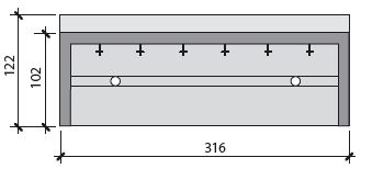 Le lave-chaussures, préparé pour la protection contre le gel, est disponible en quatre modèles différents; pour 2, 4, 6 et 8 places de nettoyage (voir versions). Dans tous les modèles, la conduite d'eau est intégrée dans le coffrage en béton et peut être placée à gauche ou à droite. Selon l'option choisie, 2 à 8 raccords de robinet (1/2") sont déjà coulés dans le panneau arrière en béton.